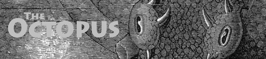 The Octopus is the official site blog for 8sails.com. Entries are mostly updates about changes to the site. Sometimes we post small items such as recent movie reviews. Longer media commentary is usually posted on The Hoffman Lens. But if you just want to know what’s doing on the site, this eight-armed critter has your back.